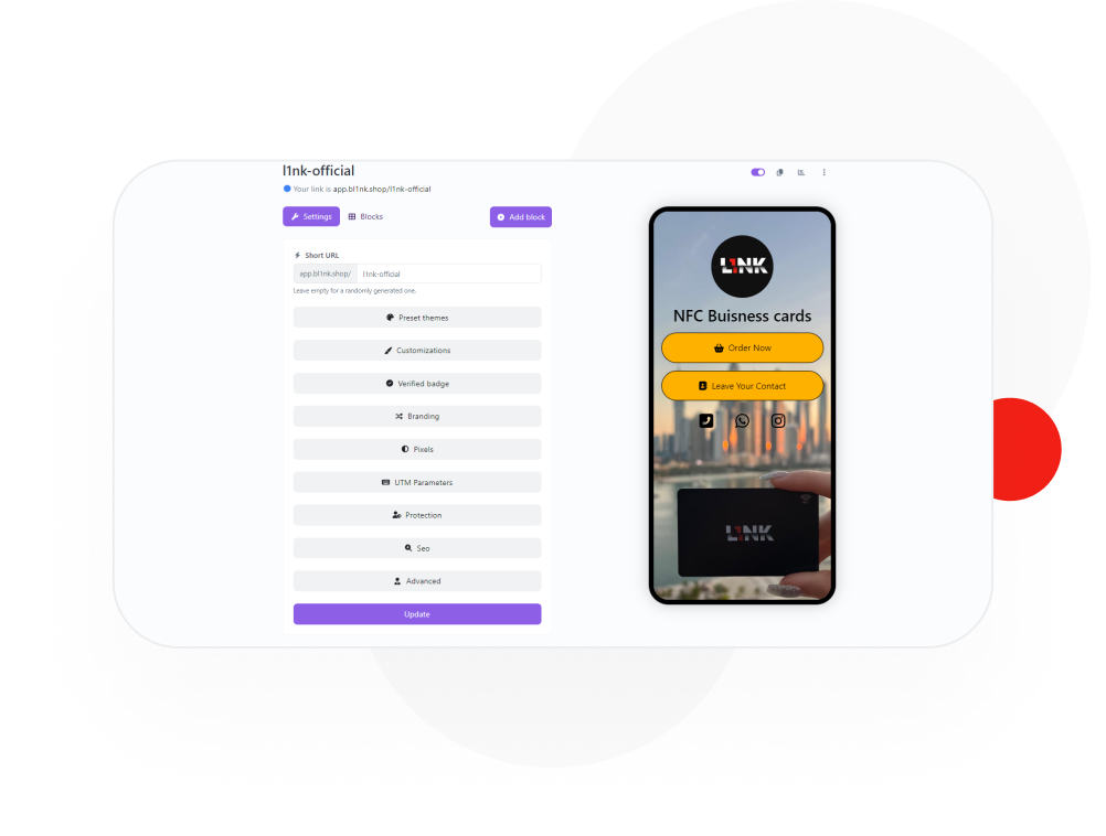 Tailor every aspect of your NFC business card to reflect your unique identity. Logos, colors, fonts—your business, your style.